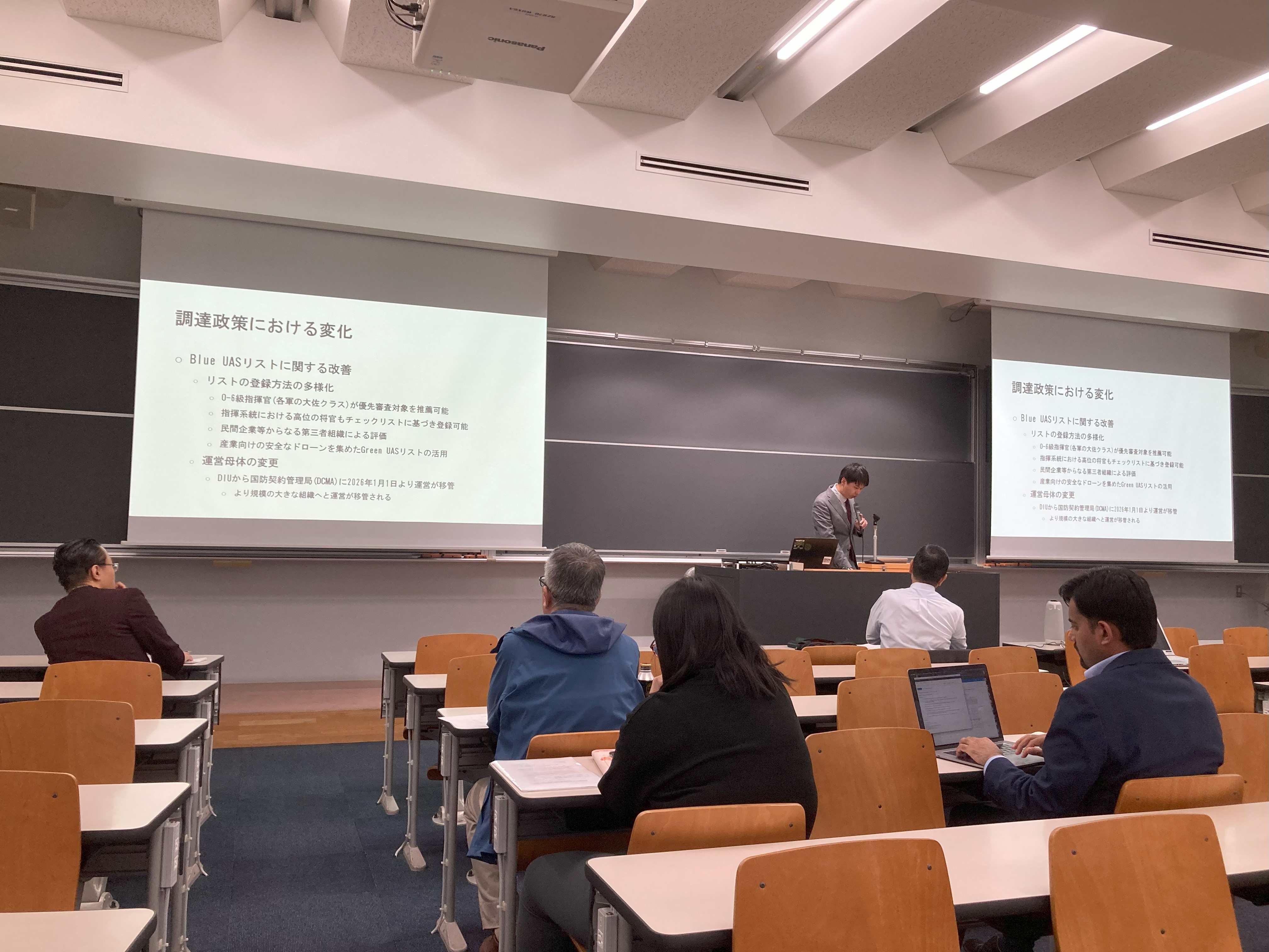 これまで報告者の人数の関係で専攻別(国際開発専攻・安全保障専攻)に会場を分けて実施していましたが、両専攻相互に議論する相乗効果を重視し、本年度は一つの会場で実施しました。